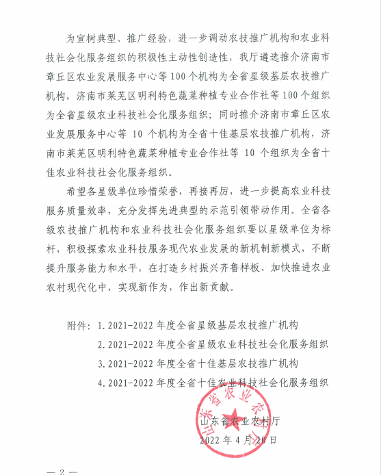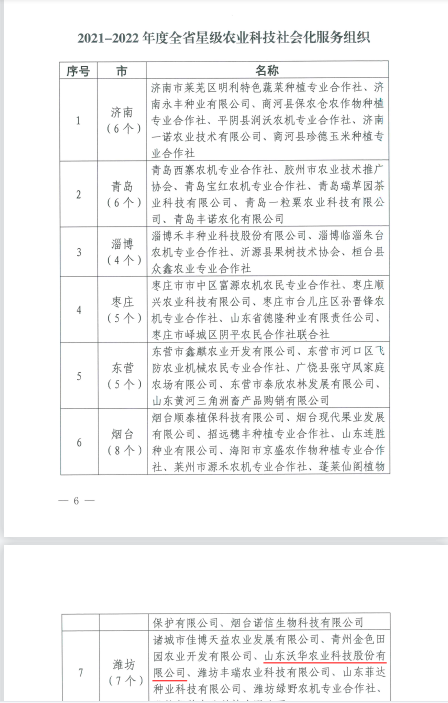喜讯!山东沃华农业荣获2021-2022年度山东省星级农业科技社会化服务组织荣誉称号!